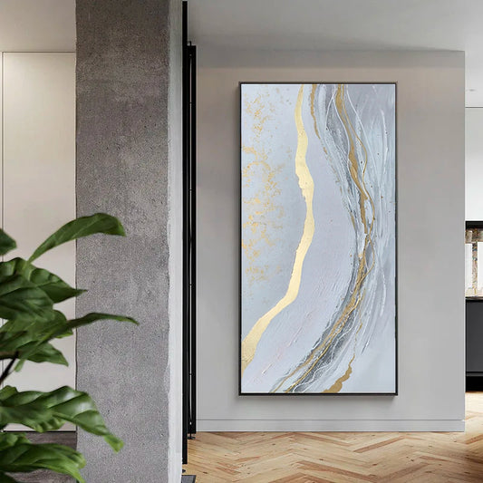 Goldy - Grey, White and Gold Foil Painting on Canvas