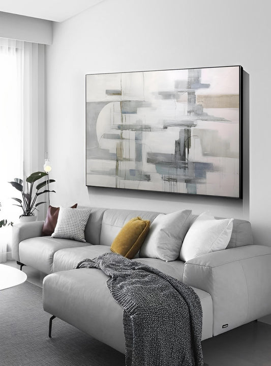 Fertch - Extra Large Gray and Blue Abstract Painting on Canvas