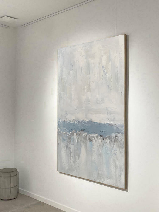 Blanchet - Large Minimal Blue and White Painting on Canvas