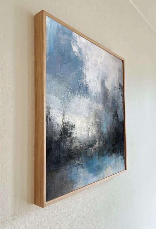 Chemain - Large Grey and Blue Abstract Painting on Canvas