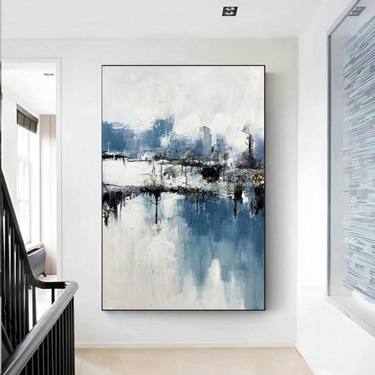 Nieble - Extra Large White and Blue Abstract Painting on Canvas